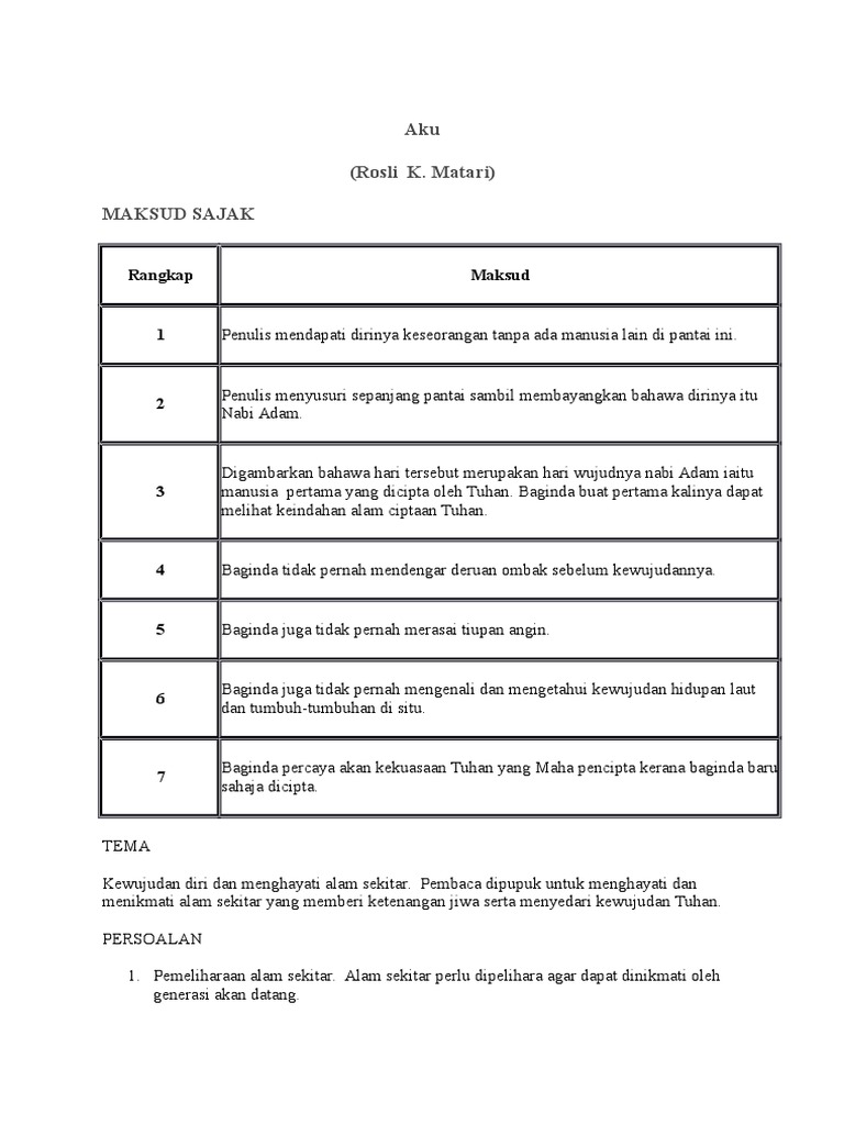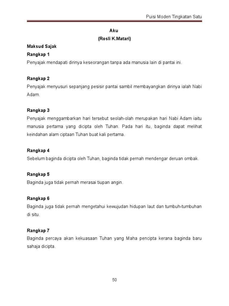 Sajak Aku Puisi Moden Komsas Tingkatan 1 Youtube