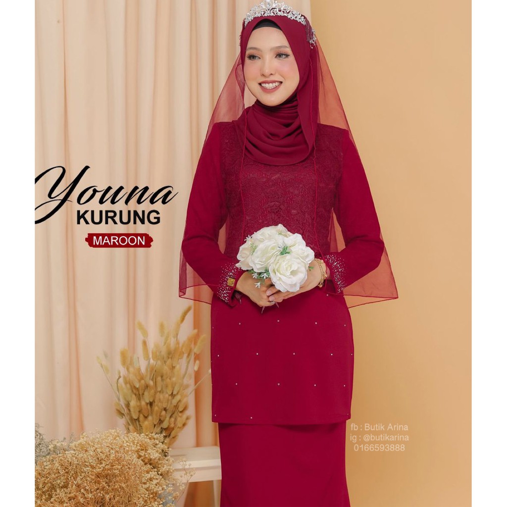 Set Baju Kurung Moden Youna Nikah Sanding Tunang Bridesmaid Couple Sedondon Maroon Merah Hati Koleksi Hari Raya Shopee Malaysia